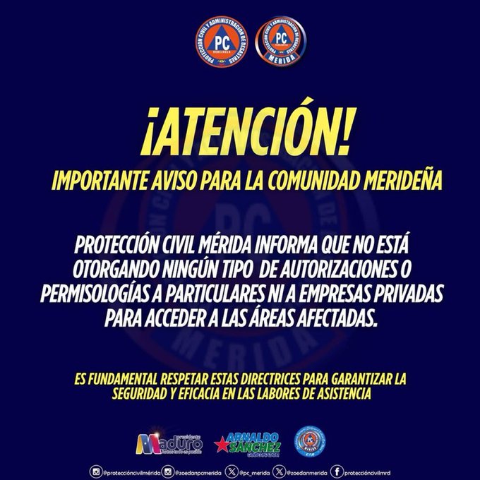 Protección Civil Mérida emitió un comunicado este lunes 30 de junio en el cual informa que no se están otorgando autorizaciones ni permisos a particulares o empresas privadas para ingresar a las zonas afectadas por las lluvias.