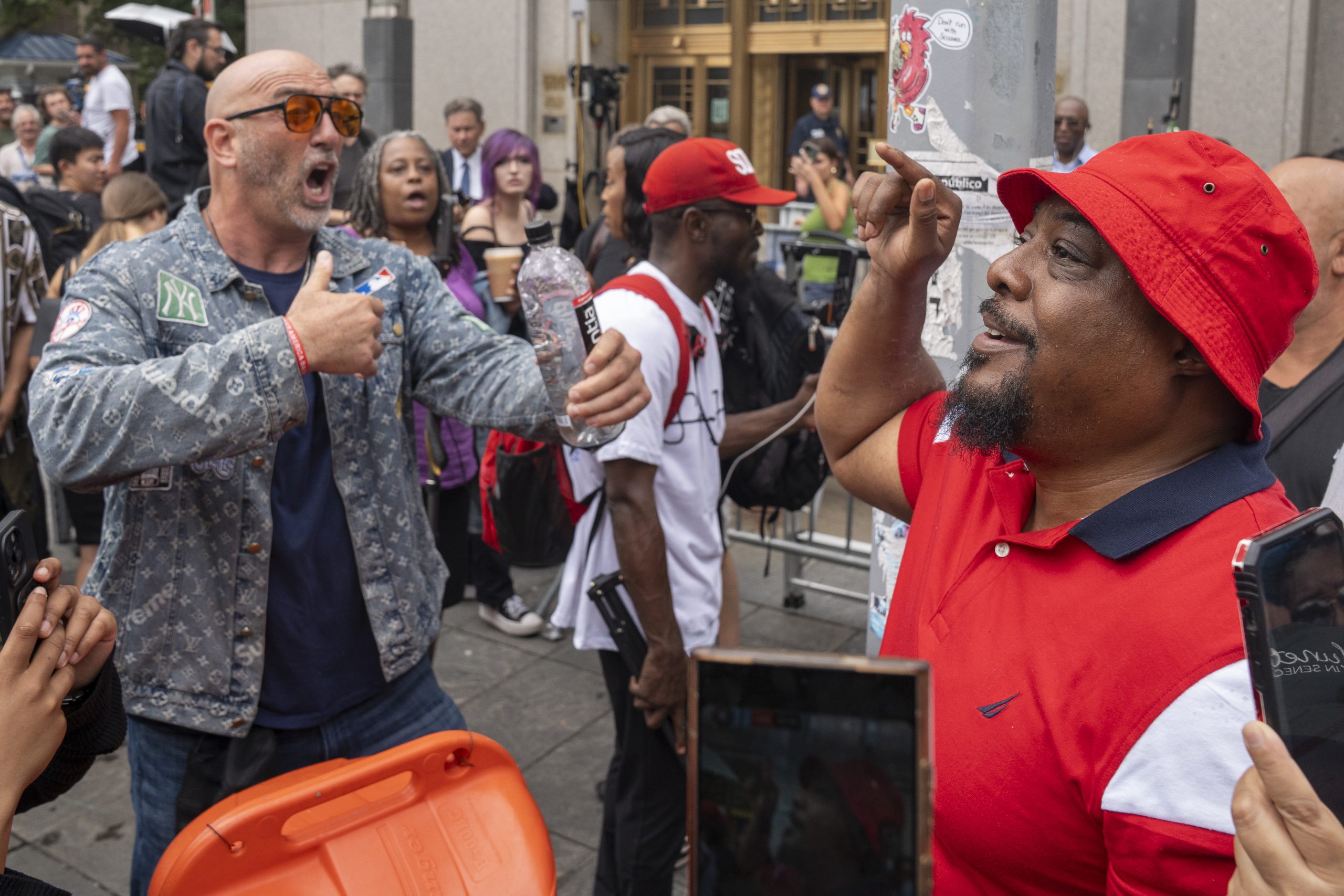 Aunque parecían minoritarios, Diddy también contaba con detractores entre el público, especialmente dos hombres -también ellos ‘creadores de contenido’- que alzaron la voz en todo momento para hacerse escuchar entre los defensores de Diddy.
