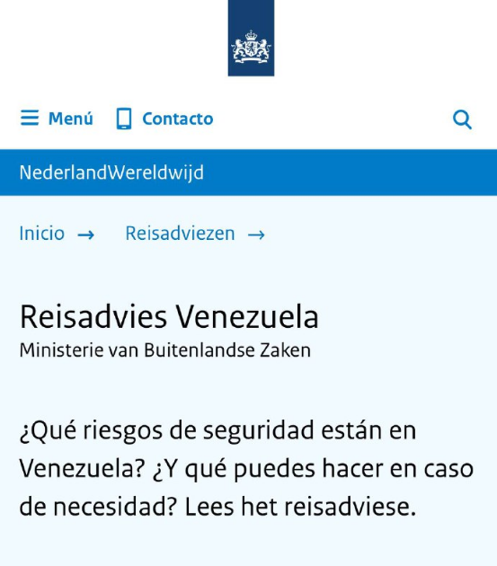 «Sea cual sea tu situación: no viajes aquí. Es demasiado peligroso. La embajada holandesa no te ayudará si te metes en problemas. ¿Está usted actualmente en ¿Venezuela? Abandone el país si es seguro hacerlo», alertó la cancillería de Países Bajos.
