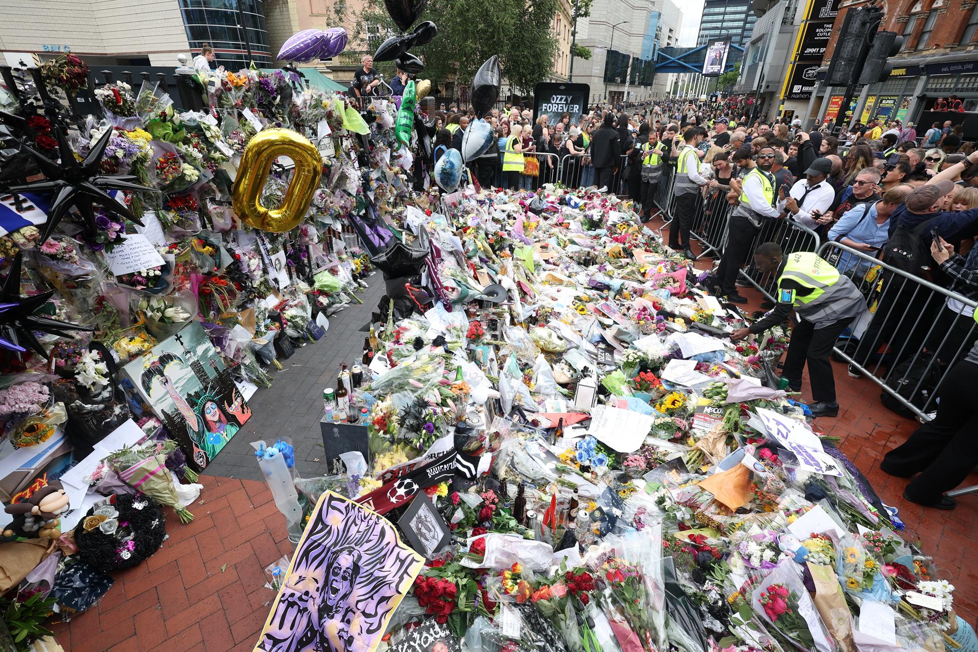 Ese punto se ha convertido desde el fallecimiento de Osbourne en un punto de culto y recuerdo a la figura del rockero, en el que se agolpan flores, imágenes, velas y otros recuerdos que pudo observar de cerca el alcalde de la ciudad, Zafar Iqbal, que recibió allí a la comitiva.