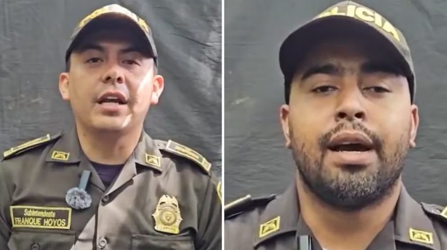 Ambos agentes, adscritos a la Dirección de Investigación Criminal e Interpol (Dijín), se identifican ante la cámara, dan su número de placa y aseguran encontrarse en poder del Frente de Guerra Oriental del ELN, grupo guerrillero que ya se había atribuido la retención de los uniformados en un comunicado previo.