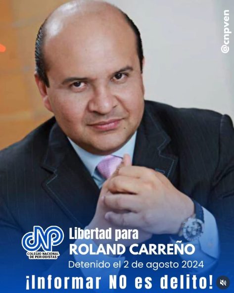 Hoy cumple 1 año detenido Roland Oswaldo Carreño Gutiérrez, nació en Aguada Grande, Estado Lara, pueblo del que se siente especialmente orgulloso, el 12 de octubre de 1965. Es comunicador ha trabajado en Globovision, Televen, VTV, El Nacional y la revista Hola., entre otros.
