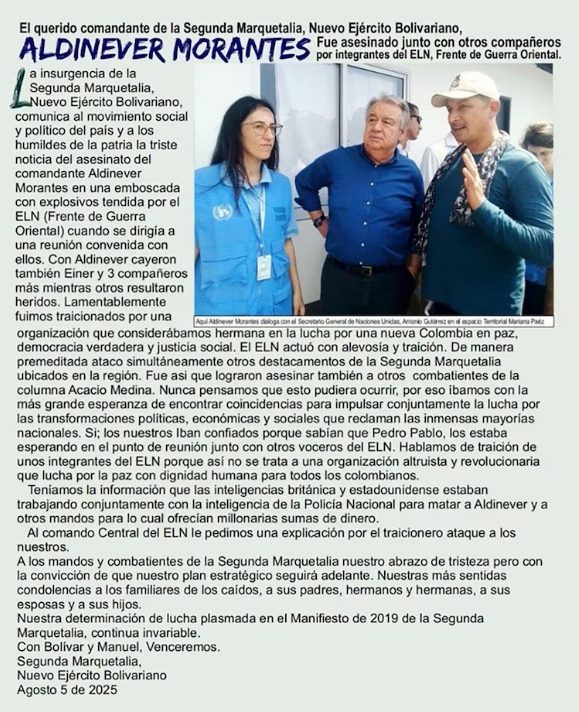 Al día siguiente, medios de comunicación colombianos dan la versión que murió en combate José Manuel Sierra Sabogal, alias “Zarco Aldinever“, el segundo comandante de la Segunda Marquetalia y hombre muy cercano a alias Iván Márquez.