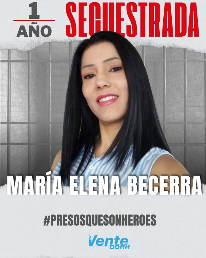 La organización Vente Venezuela exigió este miércoles la liberación de la docente María Elena Becerra Márquez, quien cumple un año detenida por las fuerzas del régimen de Nicolás Maduro por haber realizado una denuncia a través de un video publicado en TikTok.