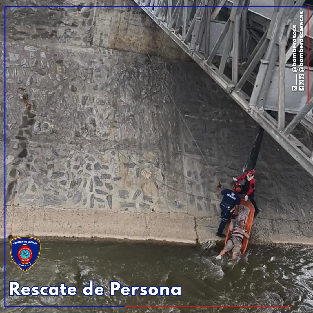 Efectivos del Cuerpo de Bomberos de Caracas realizaron el pasado jueves el rescate de un ciudadano de 48 años de edad, quien cayó al Río Guaire, en el municipio Libertador, parroquia San Pedro, Puente Nacionalidad.