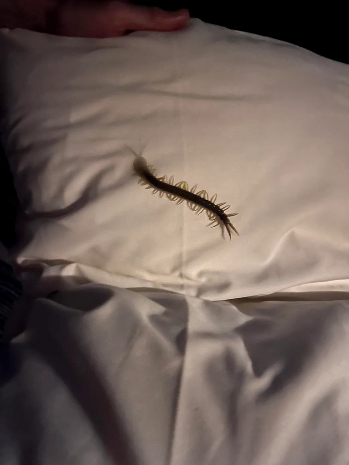 «Me desperté creyendo que mi collar se estaba deslizando por mi cuello, pero luego me di cuenta de que mi cama tendría que haber estado inclinada para que ocurriera eso. Enseguida, escuché un ruido a mi lado y vi esto en mi almohada», escribió ella a las tres de la mañana en la plataforma social, haciendo referencia a un ciempiés de gran tamaño. Además, compartió imágenes del animal.