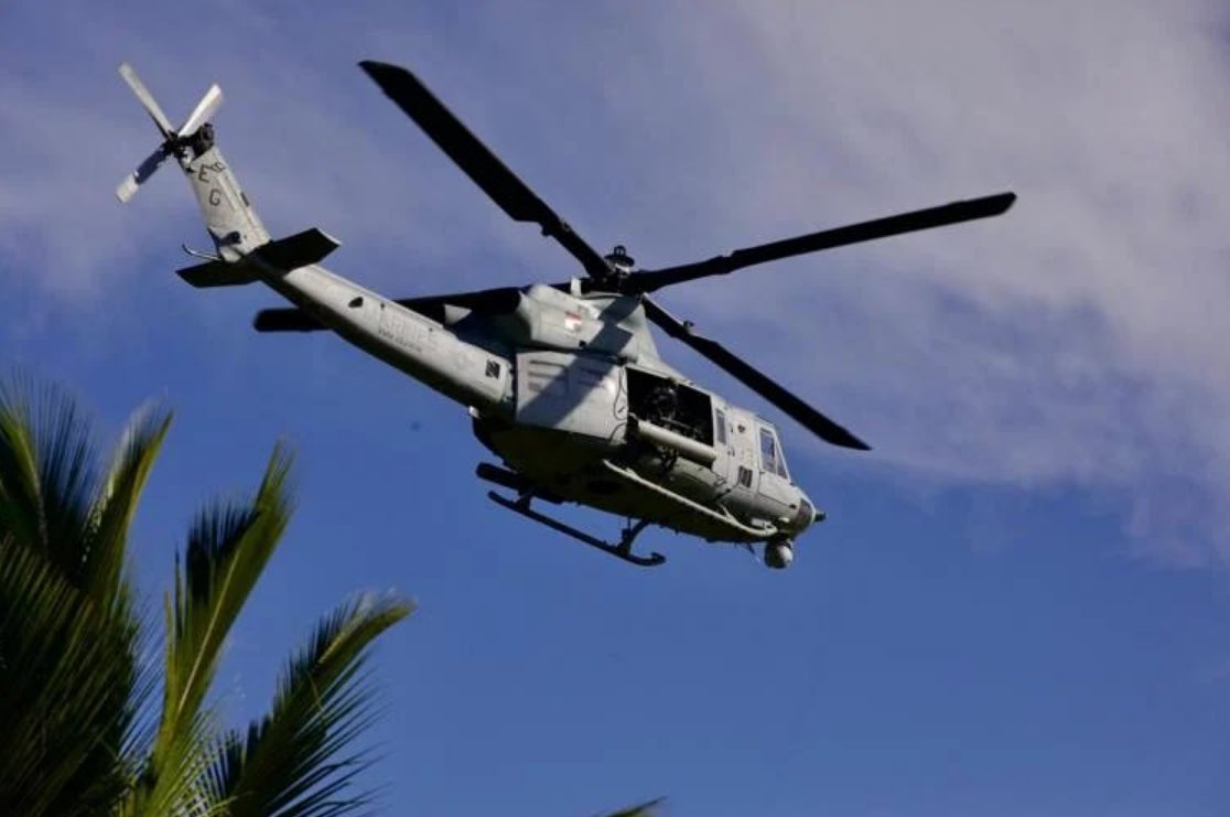 Sin embargo, en las imágenes capturadas durante la mañana y difundidas en redes sociales, se identificó al menos media docena de helicópteros de otros modelos como UH-1Y Venom, AH-1Z Viper y AH-64 Apache.