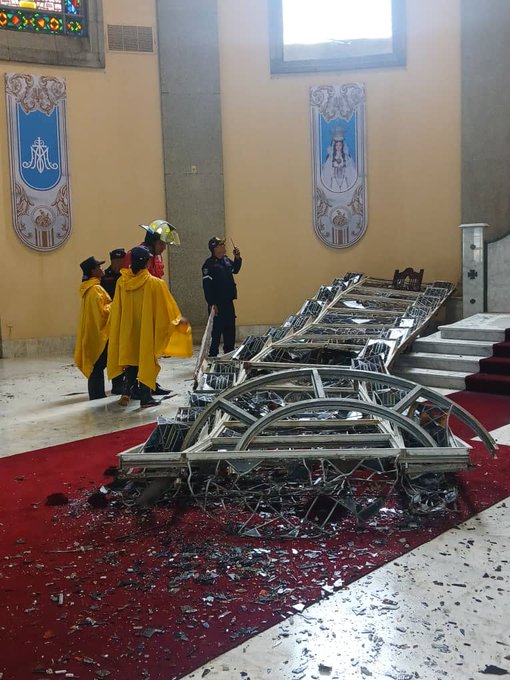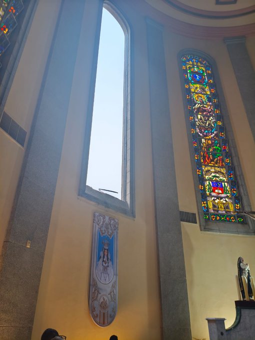 Uno de los ventanales de la Catedral de Maturín «Nuestra Señora del Carmen», en el estado Monagas, se desplomó este sábado en plena misa debido a los fuertes vientos registrados en la zona.