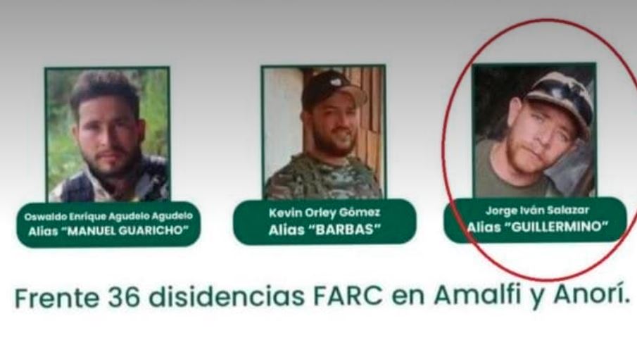El jefe guerrillero Jorge Iván Salazar, alias «Guillermino», quien supuestamente fue uno de los responsables del ataque contra un helicóptero antinarcóticos que en agosto pasado dejó 13 policías colombianos muertos, fue abatido en una zona rural de Antioquia, informó la Policía, este miércoles 10 de septiembre.