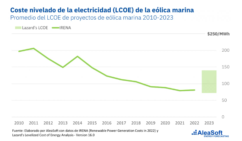 La segunda revolución renovable ha sido impulsada por el desarrollo de la energía eólica, tanto terrestre (onshore) como marina (offshore). Las turbinas modernas, con torres que superan los 250 metros de altura y rotores de más de 150 metros de diámetro, han incrementado significativamente la eficiencia, permitiendo generar más energía por unidad instalada y reduciendo los costos. Según la Agencia Internacional de la Energía (IEA, 2023), el costo nivelado de la energía (LCOE) de la eólica terrestre ha disminuido aproximadamente un 60% desde 2010, mientras que la eólica marina sigue una trayectoria descendente similar, con reducciones de hasta un 50% en el mismo período, gracias a economías de escala y avances tecnológicos.