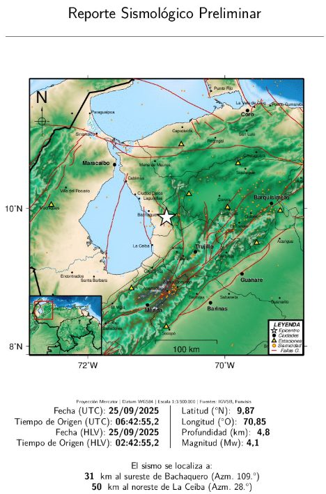 Un sismo de magnitud 4,1 estremeció localidades zulianas como La Ceiba y Bachaquero a las 2:24 A.M.