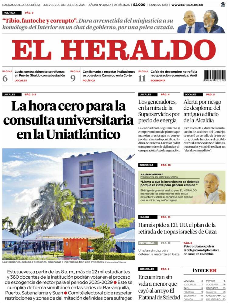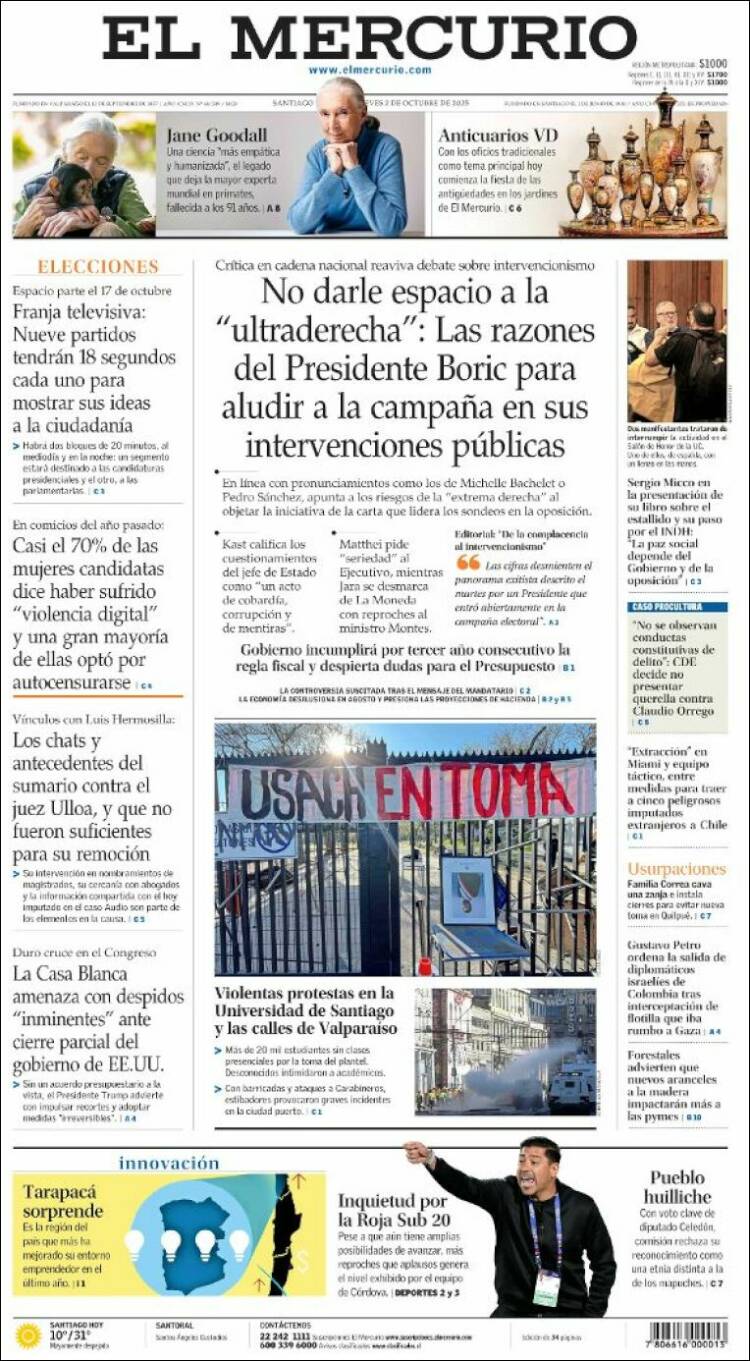 Portadas latinoamericanas de este 2 de octubre de 2025