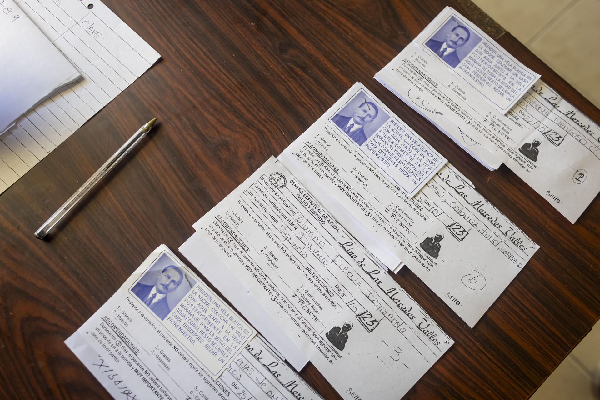 En la sala de espera hay quince sillas ocupadas por creyentes y una cartelera que indica el precio de la sesión: 20 dólares estadounidenses.
