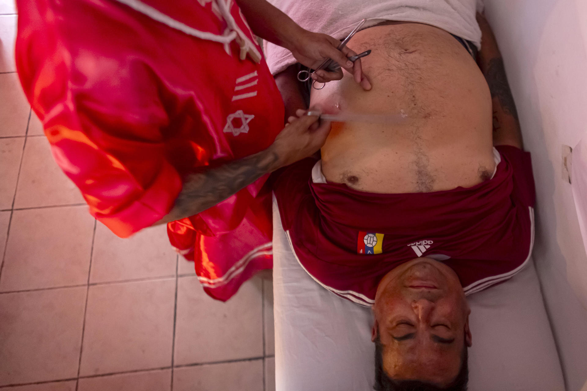En este centro de Caracas —fundado en 1999 y ubicado en Petare, la barriada más grande de Latinoamérica—, hay hombres y mujeres que se definen como espiritistas y se llaman entre sí «hermanos», con jerarquías visibles por el color de su túnica: morada para quienes recién inician como «materia» (médiums en formación), roja para quienes cuentan con años de experiencia y marrón, el color que solo viste el jefe.