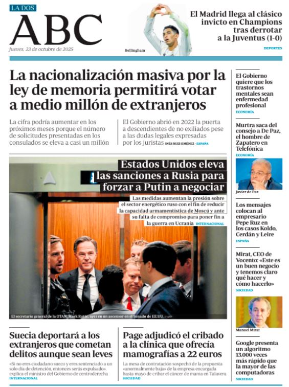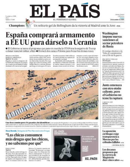 Portadas de la prensa internacional de este jueves 23 de octubre de 2025