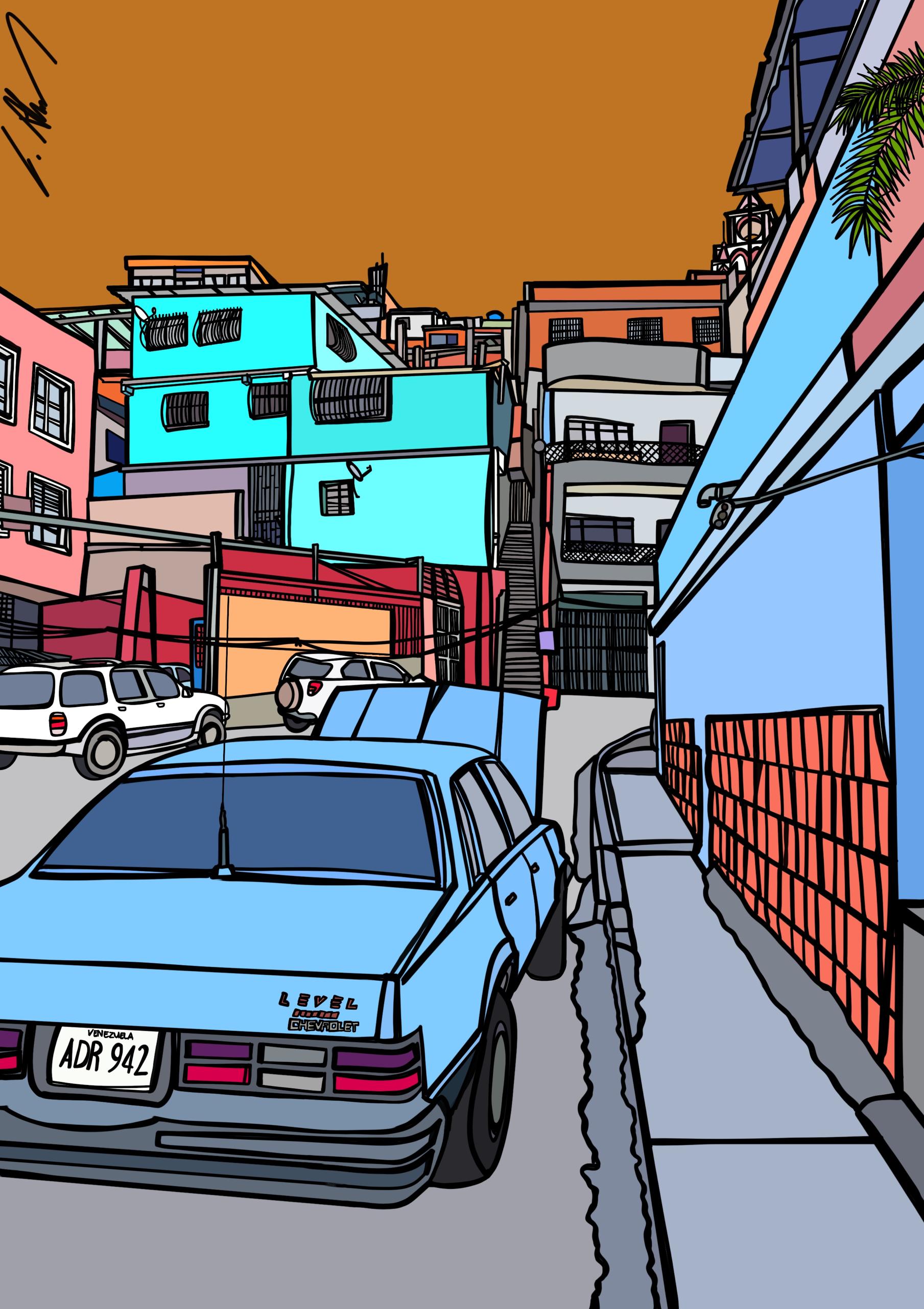 “En general, he viajado mucho por América Latina y siempre me ha inspirado su energía y vitalidad. Me interesan especialmente los lugares auténticos, así que no solo visité zonas turísticas o acomodadas, sino también barrios con mala reputación o con problemas, como Petare. Lo que siempre me llama la atención es que la gente de estos barrios suele ser muy cálida y amable, muchas veces más que en zonas más acomodadas. Por eso me gusta darles mucho color en mis cuadros, como una forma de expresar la alegría de vivir que hay a pesar de las dificultades”, añadió.