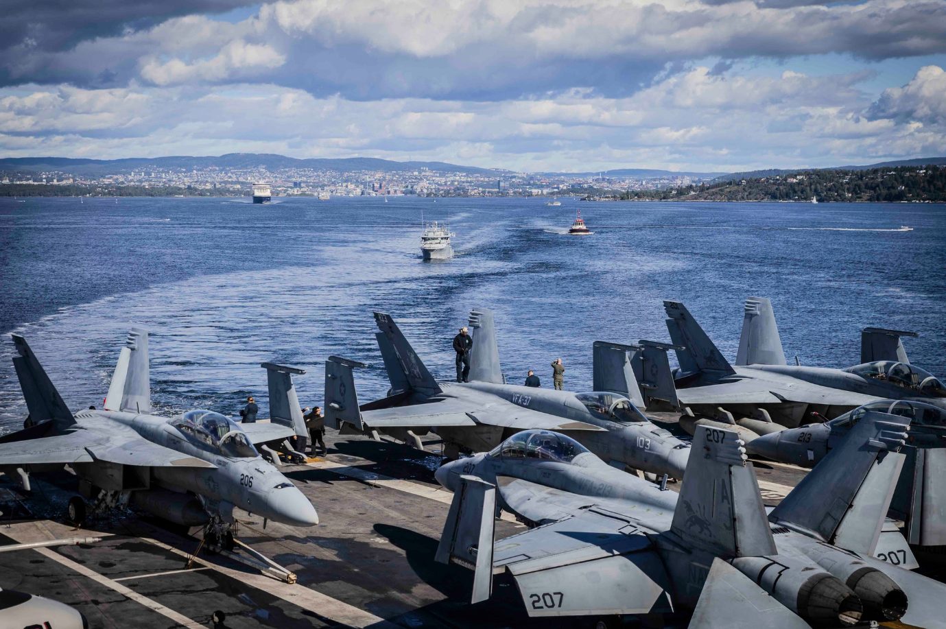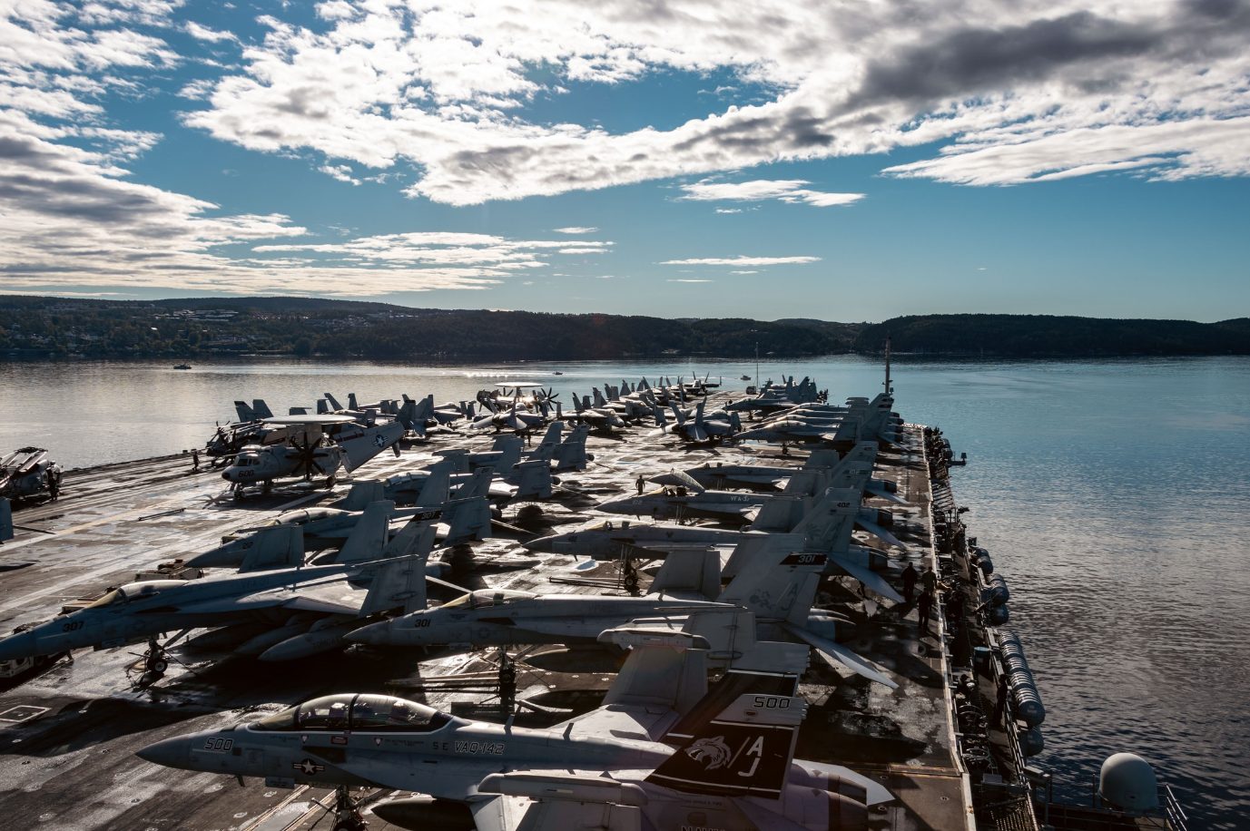 En total, es capaz de trasladar hasta 75 aeronaves, entre las que se incluyen helicópteros Sikorsky SH-60 Seahawk, drones Northrop Grumman X-47B y aviones cazabombarderos como: