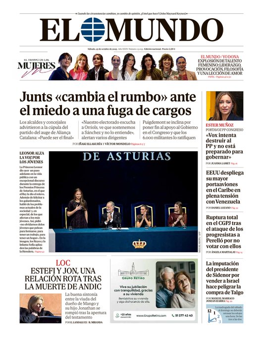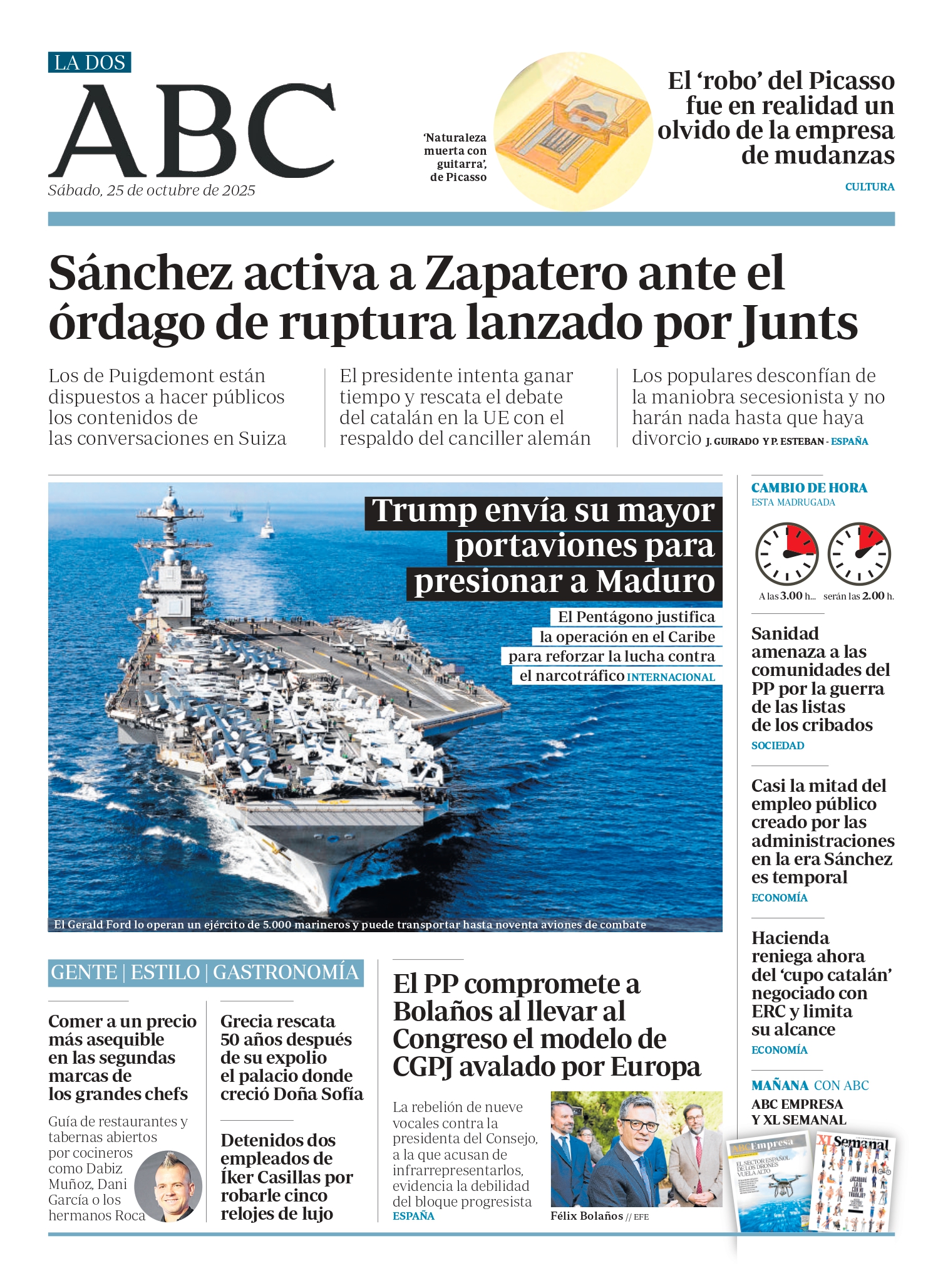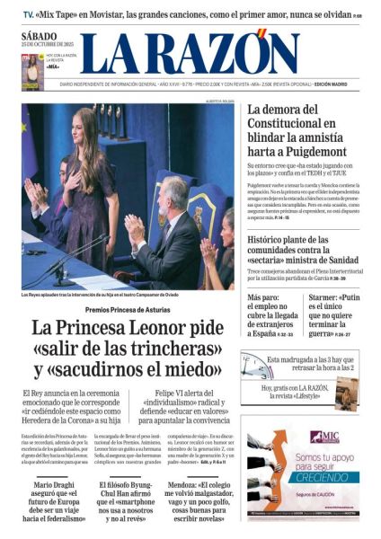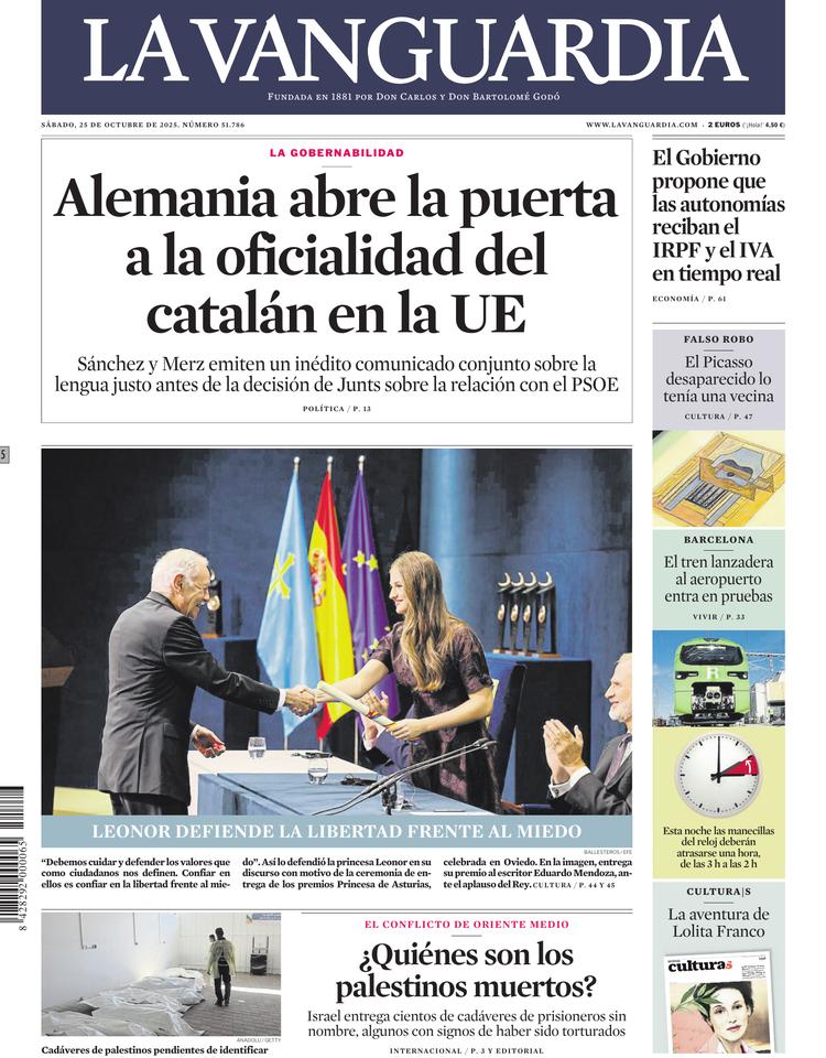 Portadas de la prensa internacional de este sábado 25 de octubre de 2025