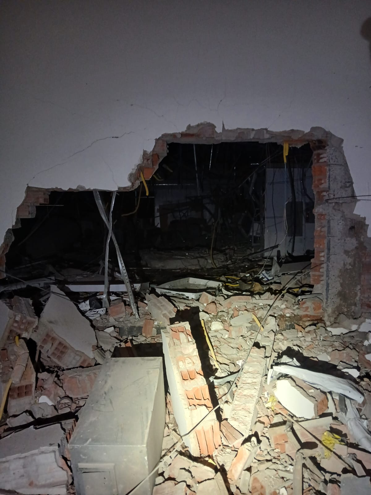 González indicó que los sujetos detonaron explosivos contra la bóveda, lo que también afectó las paredes, el cielo raso del inmueble y al menos tres cajeros automáticos.
