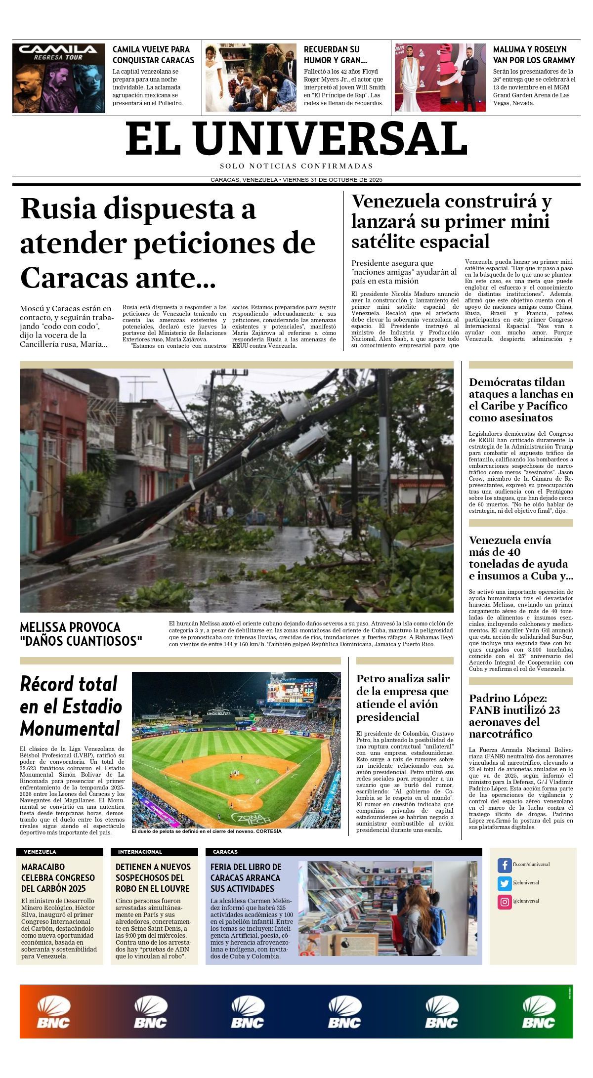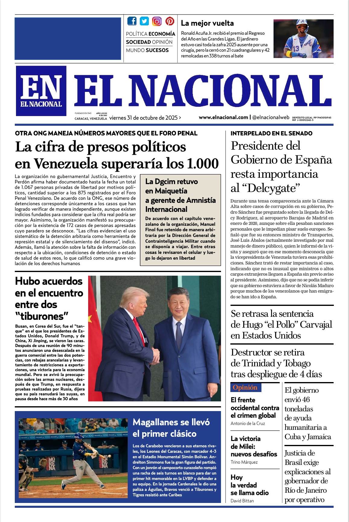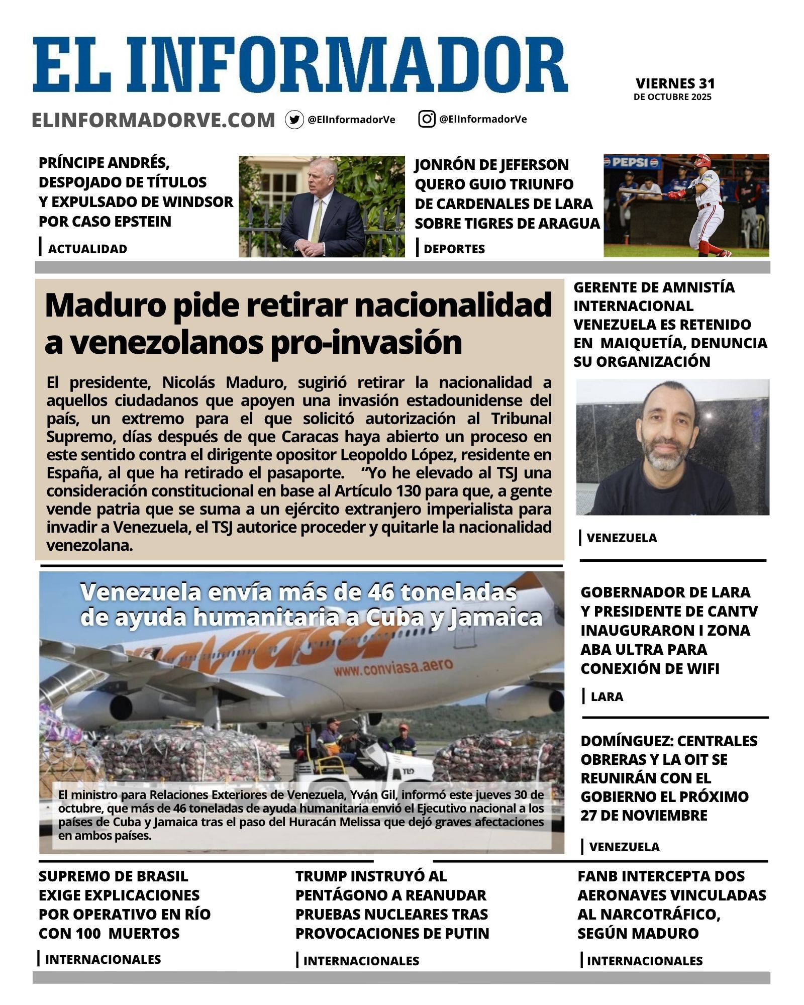 Portadas de este viernes 31 de octubre de 2025 - LaPatilla.com