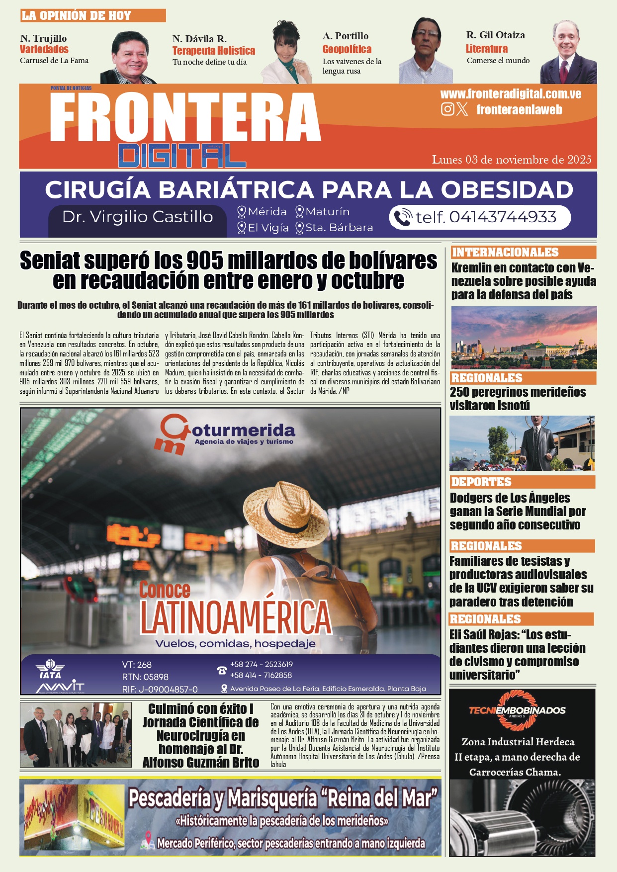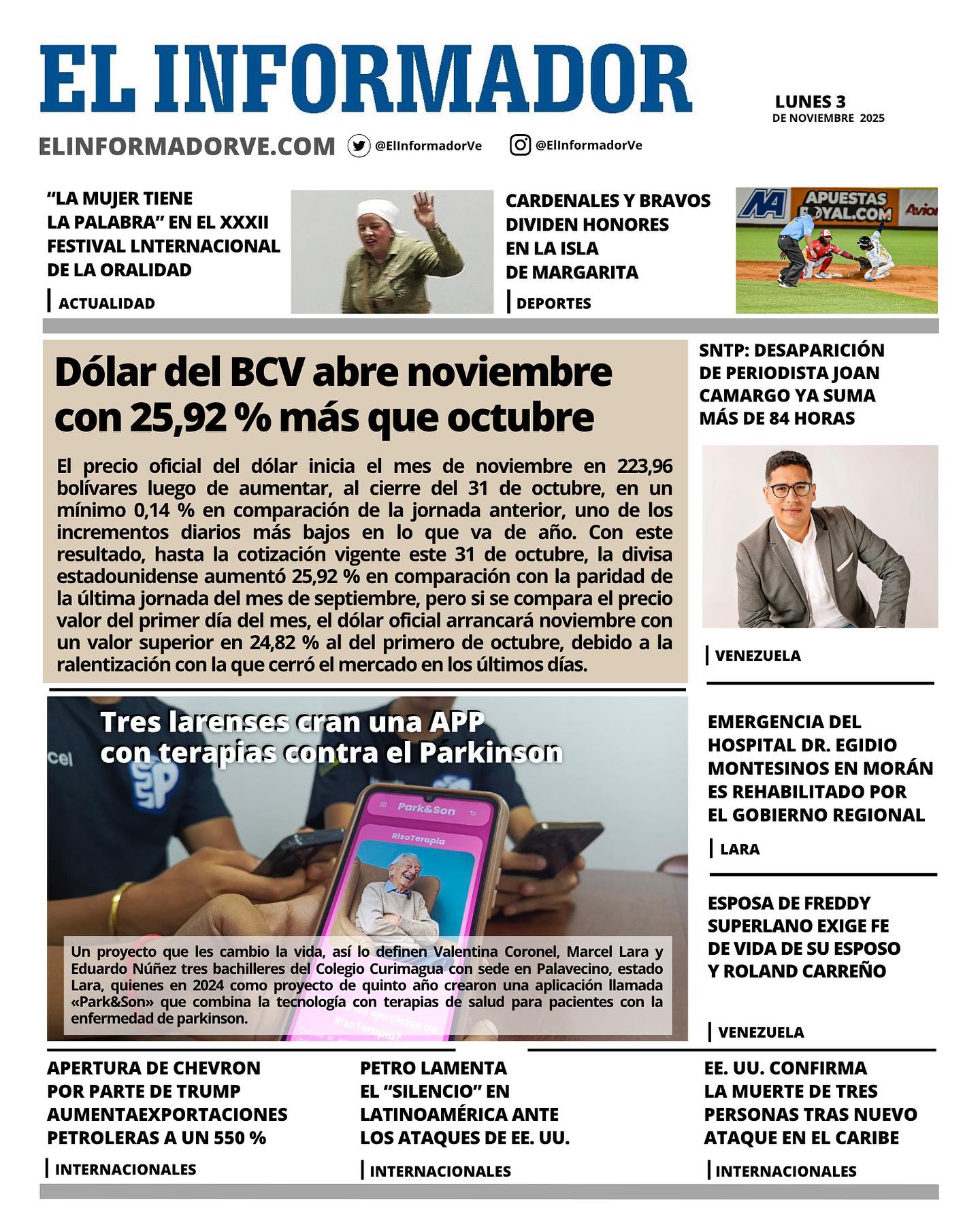 Portadas de este lunes de noviembre de 2025 - LaPatilla.com