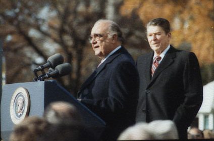 A las 9:55 de la noche, con la voz segura de un estadista, Reagan abrió formalmente el brindis. Subrayó el peso de Venezuela como referente democrático en América Latina y, con tono solemne, evocó la figura de Simón Bolívar: “Es incalculable la deuda de gratitud que los estadounidenses deben a Simón Bolívar. Por lo tanto, es apropiado que debamos hacer una pausa y reflexionar sobre sus grandes logros en este bicentenario de su nacimiento… Bolívar, más que cualquier otra figura en la historia del hemisferio occidental, entendió que, aunque somos ciudadanos de países separados, somos miembros de una familia en el Nuevo Mundo: somos americanos”.