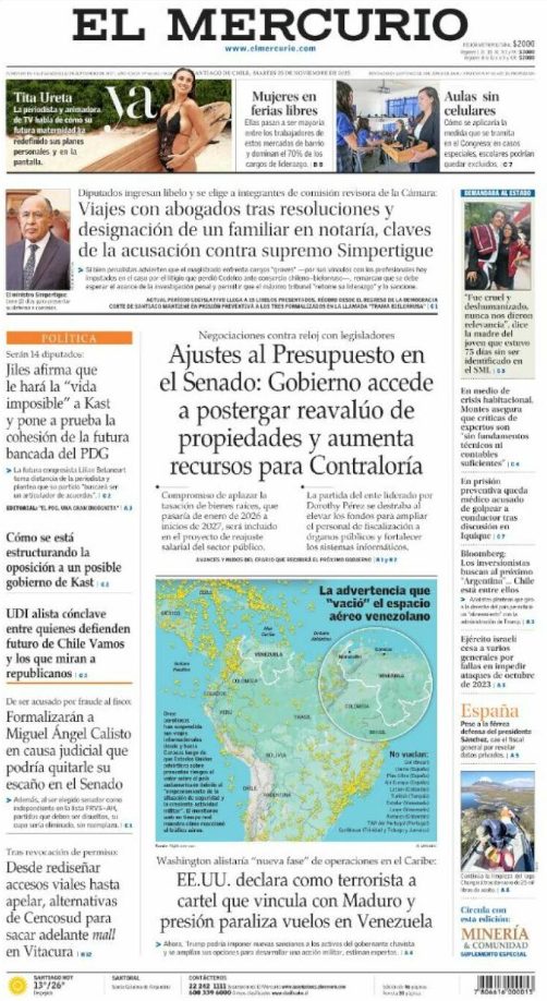 Portadas latinoamericanas de este martes 25 de noviembre de 2025