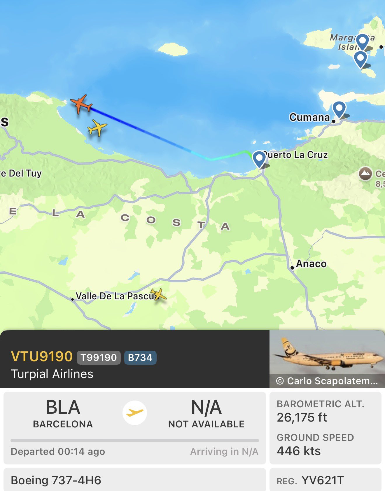 Solo algunas aeronaves aisladas, principalmente vuelos privados y operaciones puntuales de aerolíneas nacionales, se observan dentro del FIR venezolano o sobre sus aguas.