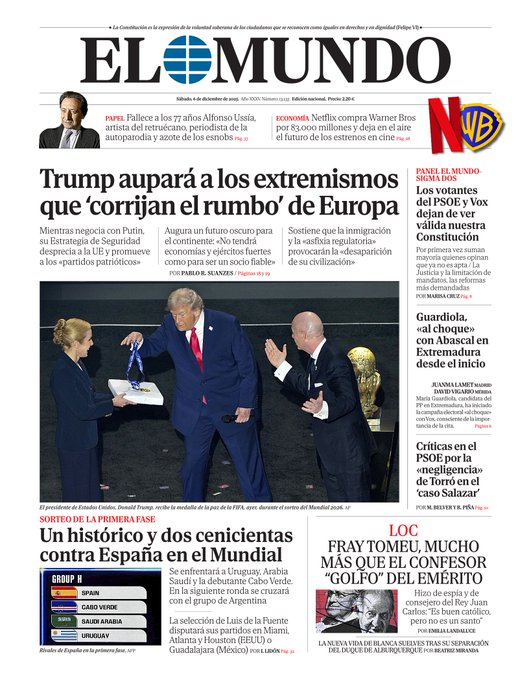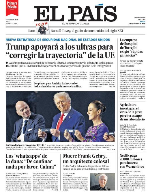 Portadas de la prensa internacional de este sábado 6 de diciembre de 2025
