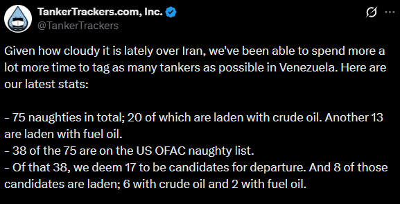 «Dado lo nublado que está últimamente sobre Irán, hemos podido dedicar mucho más tiempo a identificar tantos petroleros como sea posible en Venezuela», comentó TankerTrackers en sus redes sociales.