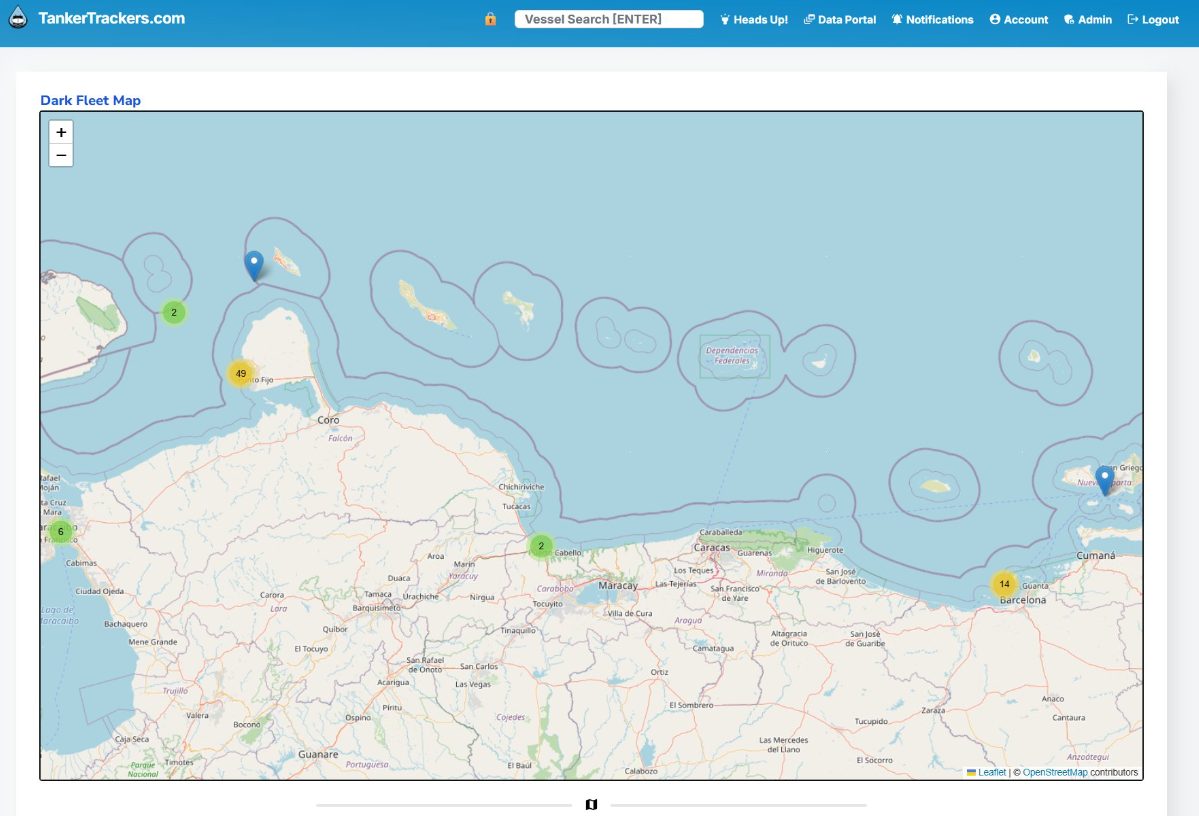 El rastreador digital TankerTrackers actualizó este jueves sus datos sobre los buques petroleros que se encuentran frente a las costas de Venezuela en medio del bloqueo ordenado por el presidente de Estados Unidos, Donald Trump.