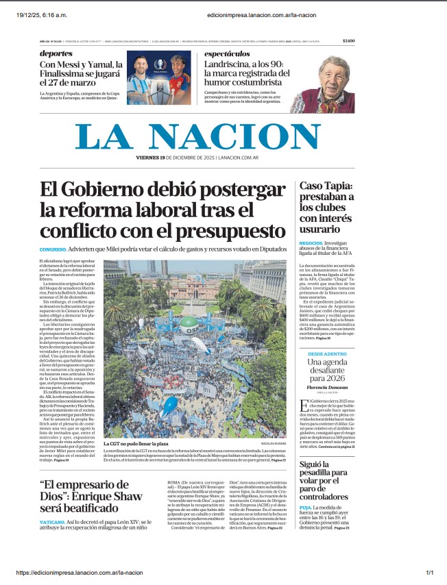 Portadas latinoamericanas de este 19 de diciembre de 2025