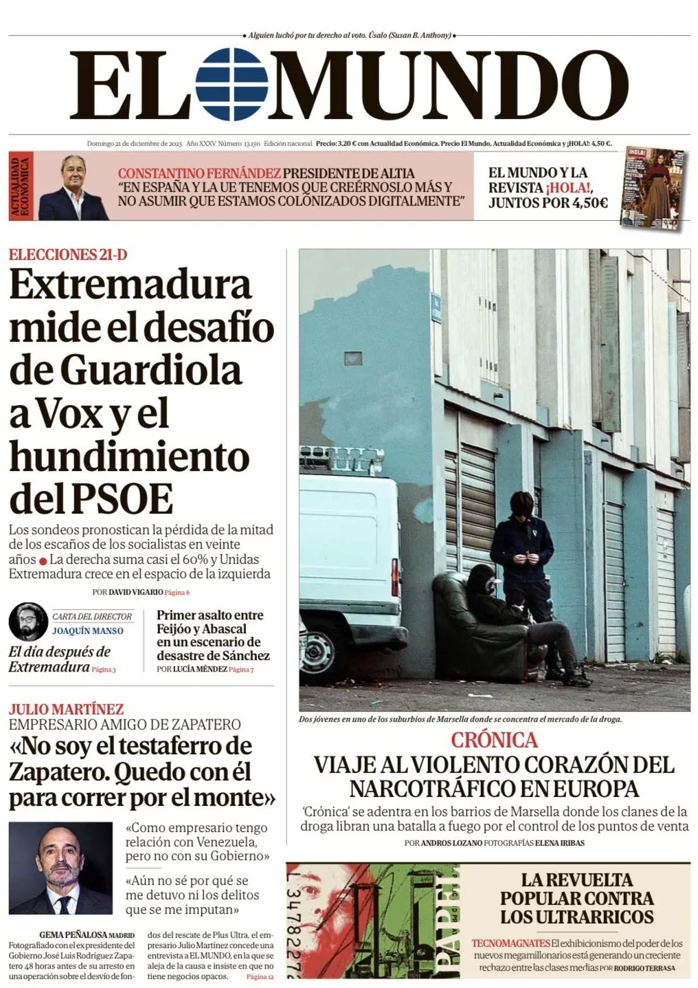 Portadas de la prensa internacional de este domingo 21 de diciembre de 2025