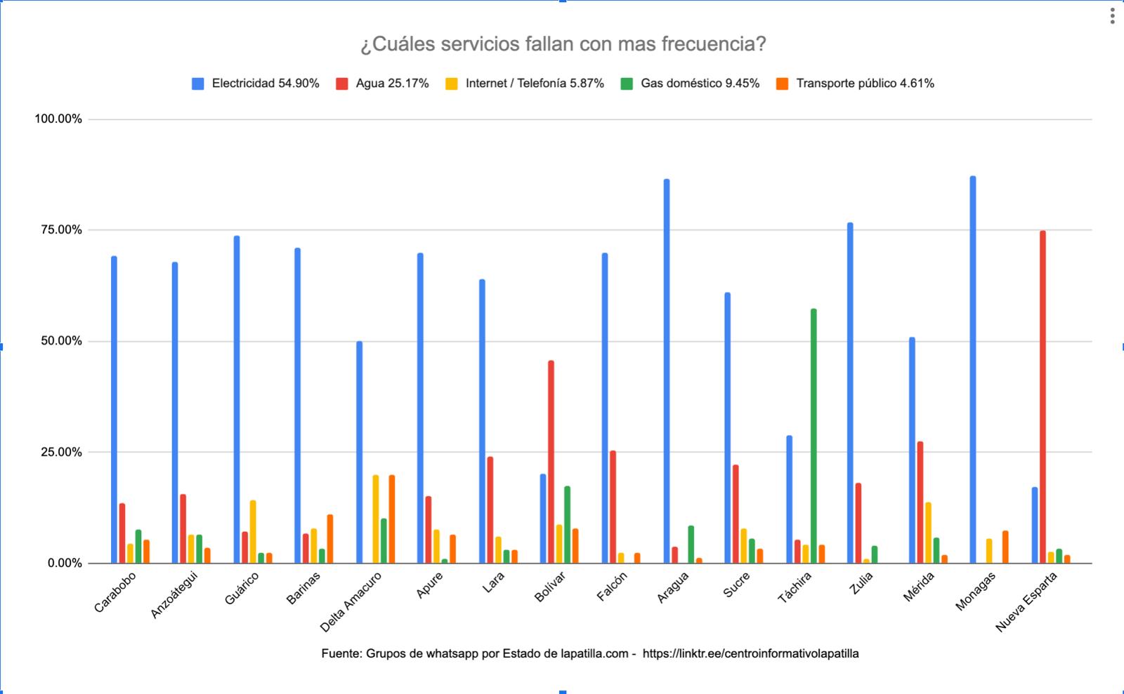 Un sondeo realizado por LaPatilla, a través de sus canales de WhatsApp en 16 estados del país y su canal nacional de Telegram, revela cuáles son los servicios públicos que más afectan la vida diaria de los venezolanos. El resultado es contundente: la electricidad sigue siendo el principal problema nacional, seguida por el acceso al agua, con importantes variaciones regionales.