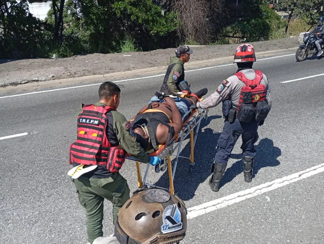 El equipo de paramédicos de la autopista atendió el pasado viernes un motorizado que sufrió un choque en la parte baja del distribuidor La Araña, al oeste de Caracas.
