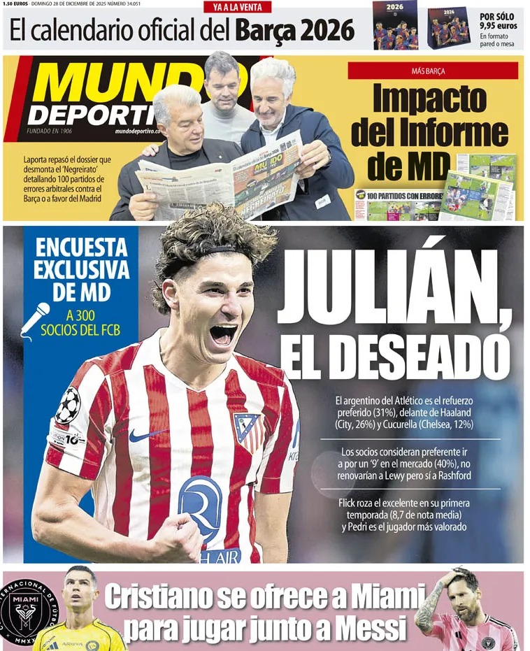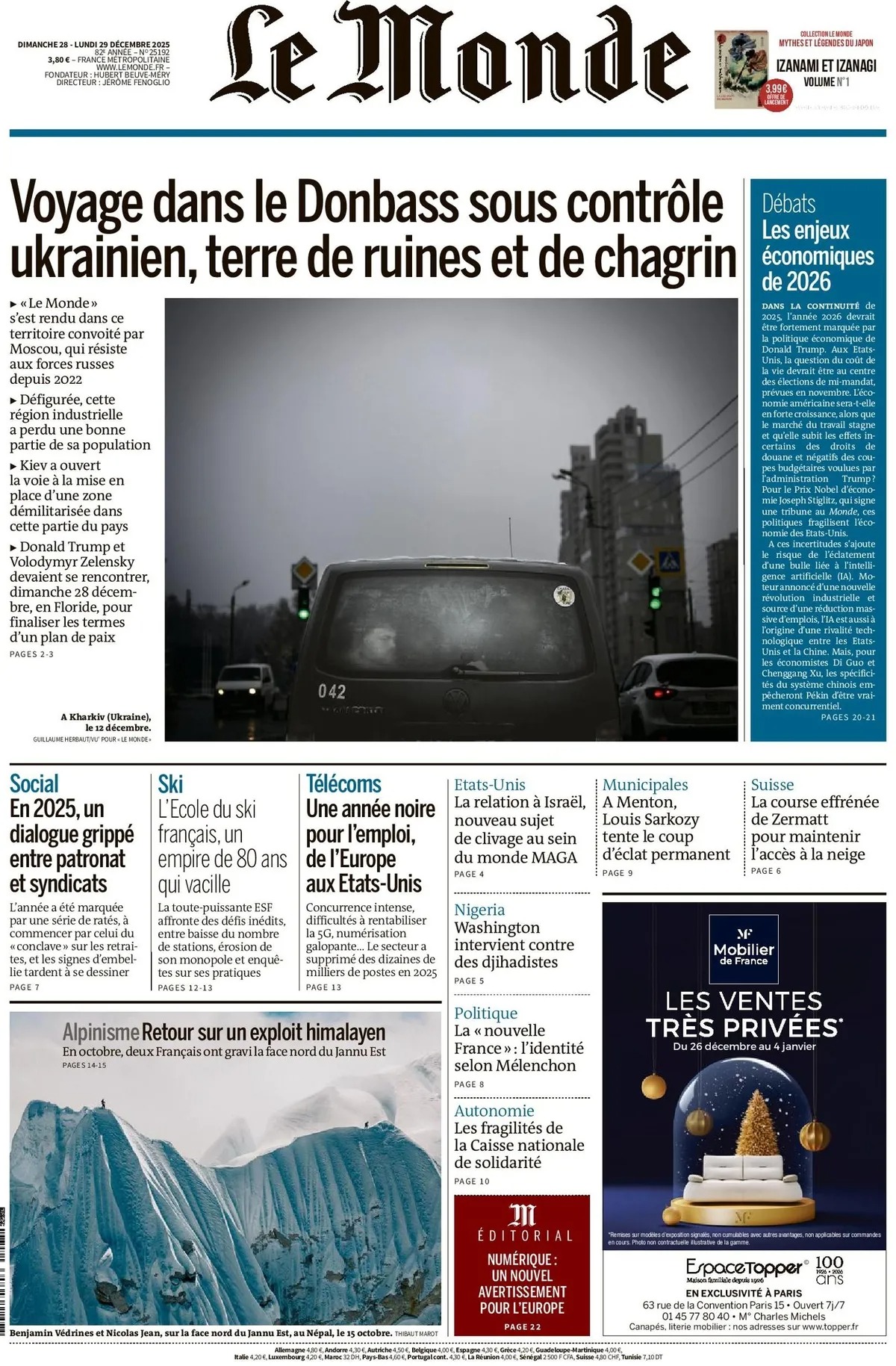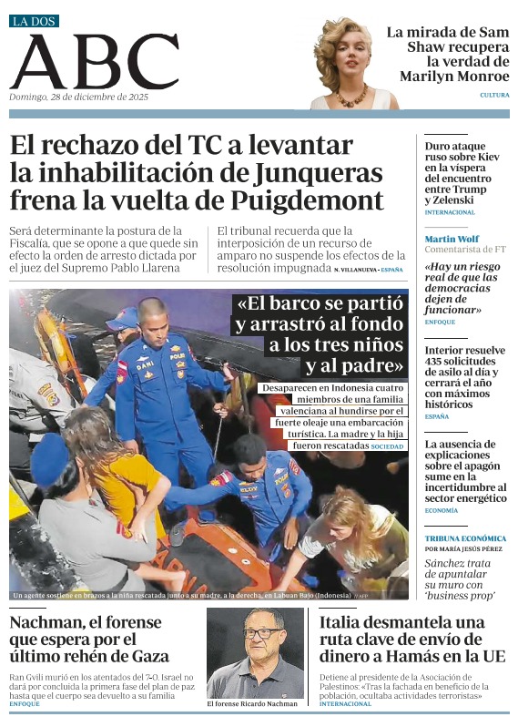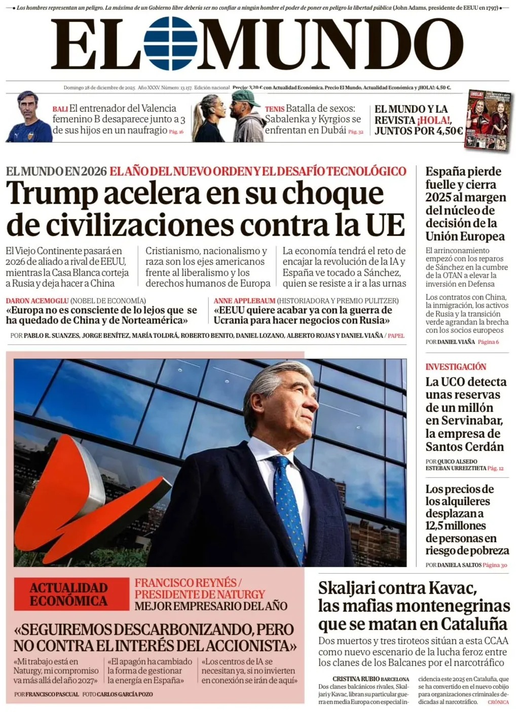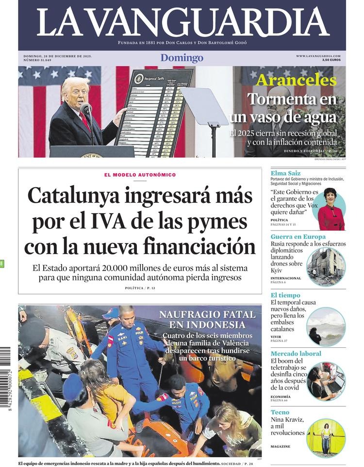 Portadas de la prensa internacional de este domingo 28 de diciembre de 2025