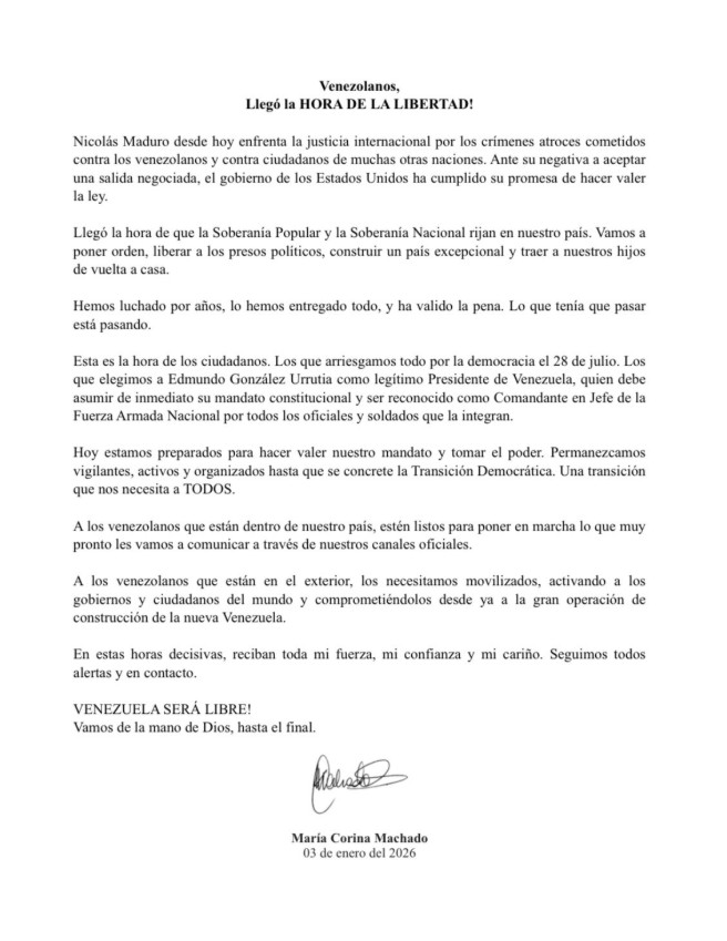 Esta es la hora de los ciudadanos. Los que arriesgarnos todo por la democracia el 28 de julio. Los que elegimos a Edmundo González Urrutia como legítimo Presidente de Venezuela, quien debe asumir de inmediato su mandato constitucional y ser reconocido como Comandante en Jefe de la Fuerza Armada Nacional por todos los oficiales y soldados que la integran.