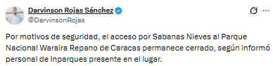 Las autoridades de Inparques no han detallado hasta cuándo se mantendrá el cierre.