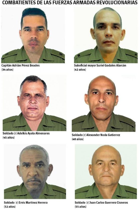 Según el Ministerio del Interior de la isla, los cubanos «cayeron en combate directo o como resultado de los bombardeos» y fueron descritos como «héroes que supieron poner en alto el sentir solidario de millones de compatriotas».