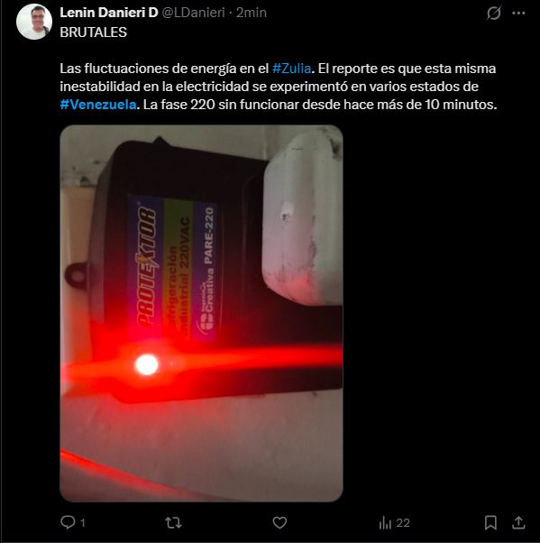 Lenin Danieri, periodista zuliano, reportó fluctuaciones en la electricidad en Zulia, donde el servicio se ha mantenido inestable en varios estados.