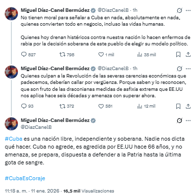El dictador cubano Miguel Díaz-Canel respondió este domingo a través de su cuenta en X a las medidas anunciadas por el presidente de Estados Unidos, Donald Trump, quien confirmó el cese total del suministro de crudo venezolano hacia la isla.