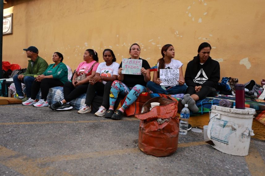 Una atmósfera de tensa espera se vive a las afueras del comando de la PNB de la Zona 7 en Boleíta, donde familiares de presos permanecen apostados a la espera de la excarcelación prometida por el chavismo.