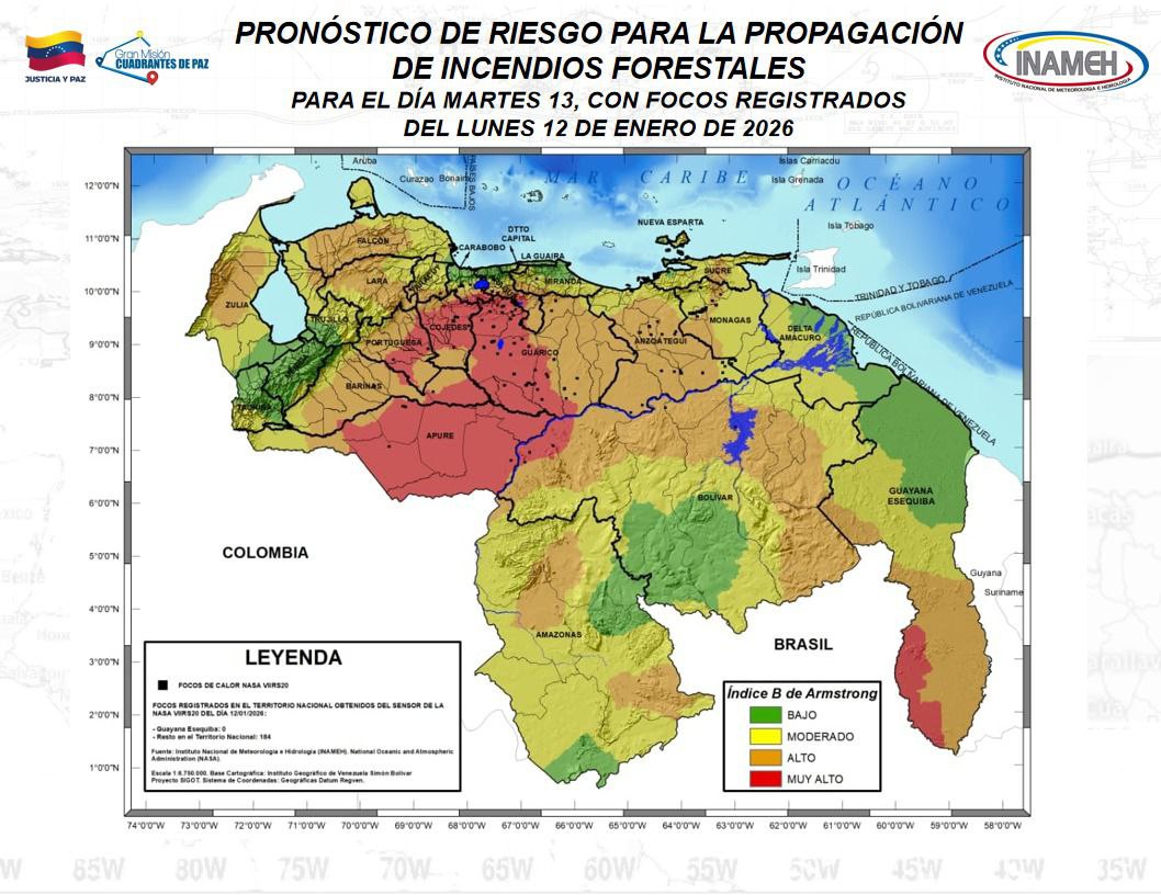 Inameh advirtió de la áreas con posibilidad de incendios, debido a la llegada de la sequía en el país.