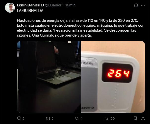 Usuarios de la red social X (anteriormente Twitter) reportaron fluctuaciones intensas alrededor de las 2:50 pm, incluyendo apagón total y altas fluctuaciones de energía.
