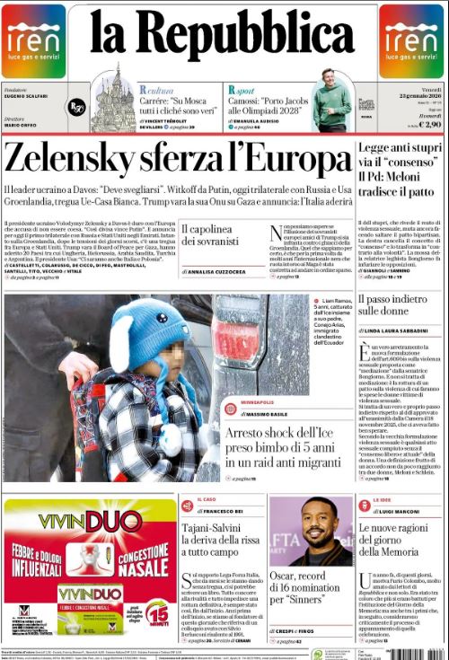 Portadas de la prensa internacional de este viernes 23 de enero de 2026