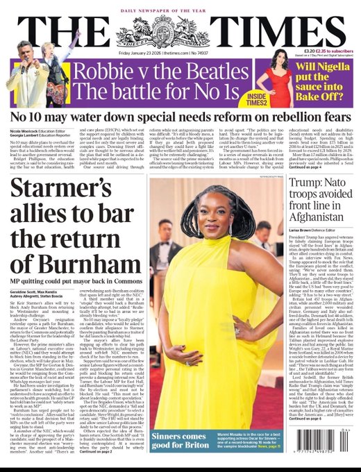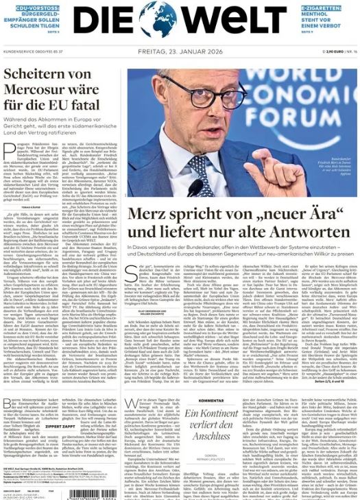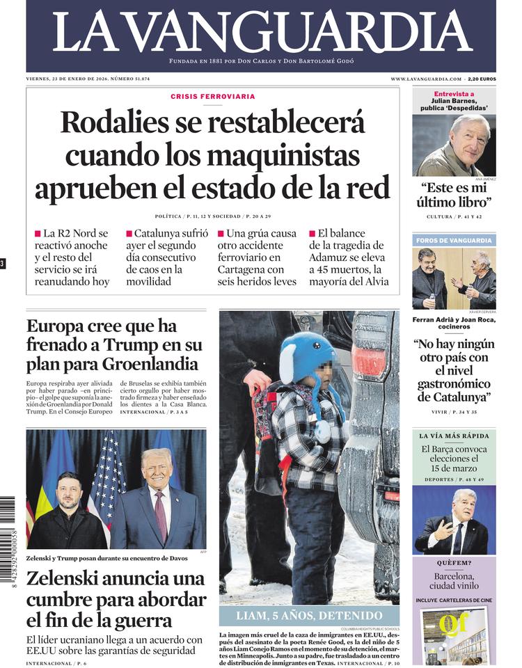 Portadas de la prensa internacional de este viernes 23 de enero de 2026