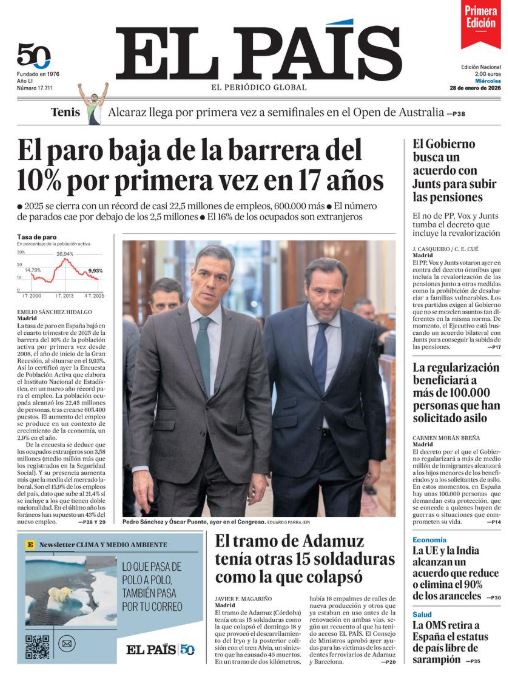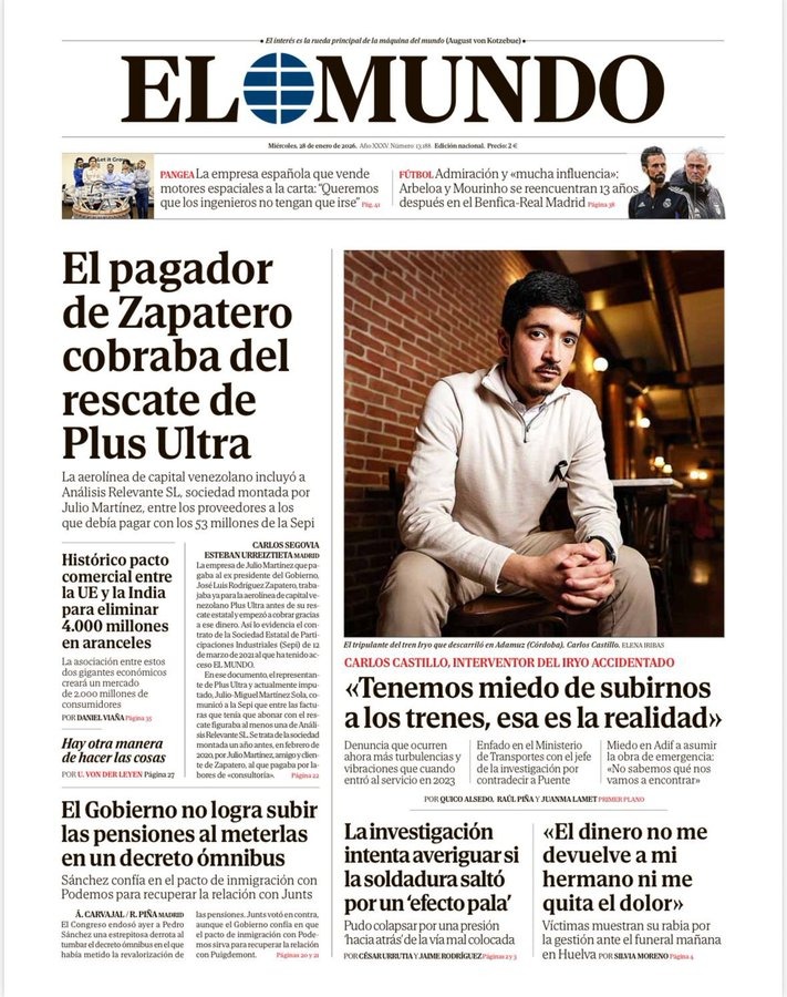 Portadas de la prensa internacional de este miércoles 28 de enero de 2026