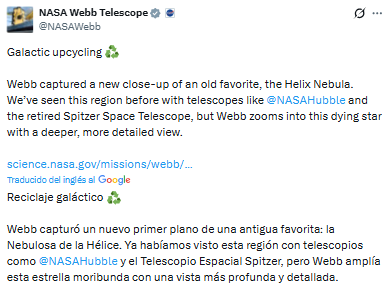 Ahora, recientemente gracias al telescopio James Webb se puede observar una nueva perspectiva del “Ojo de Dios”, esta imagen es la más nítida hasta ahora obtenida en este rango, su captura permitió observar los últimos instantes de una estrella moribunda.