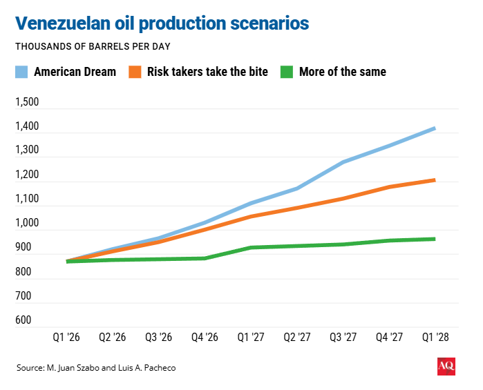 Por otro lado, dado que Venezuela es un gran yacimiento industrial abandonado, estas reformas podrían abrir la puerta a operadores más pequeños que puedan abordar la reactivación de algunos yacimientos menores, donde la inversión puede gestionarse en fases cortas. Los retornos podrían ser enormes en un plazo relativamente corto. Los riesgos persistirán: el estado de derecho, los recursos humanos, la seguridad física y la generación de electricidad, por nombrar algunos. Se puede especular que este tipo de empresas serán cortejadas con entusiasmo por Venezuela y Estados Unidos, ya que un aumento temprano en su producción puede considerarse una victoria temprana.