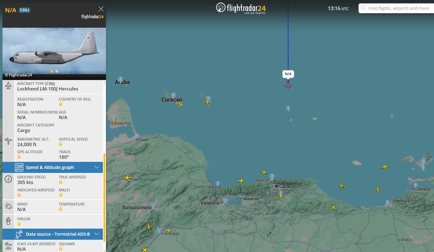Un avión de transporte estadounidense LM-100J Hercules vinculado a la Agencia Central de Inteligencia (CIA, por sus siglas en inglés) volvió a Venezuela en la mañana de este viernes para descargar material logístico en el Aeropuerto Internacional Simón Bolívar en Maiquetía, estado La Guaira.